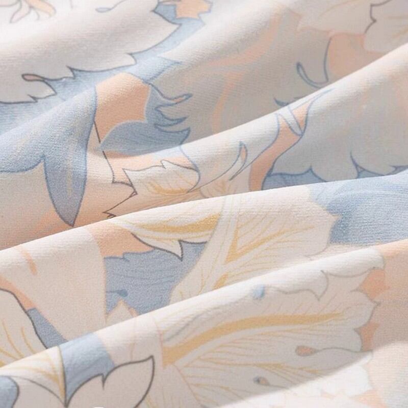 淡いピンクとブルーの花柄で柔らかさをプラスし、大人っぽくなりすぎないバランスの取れた一着をご用意。