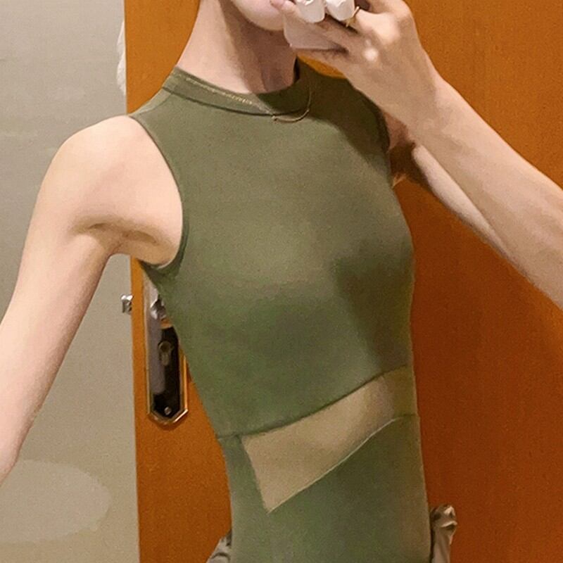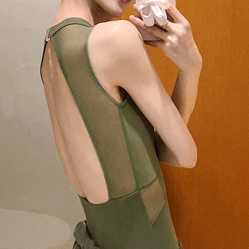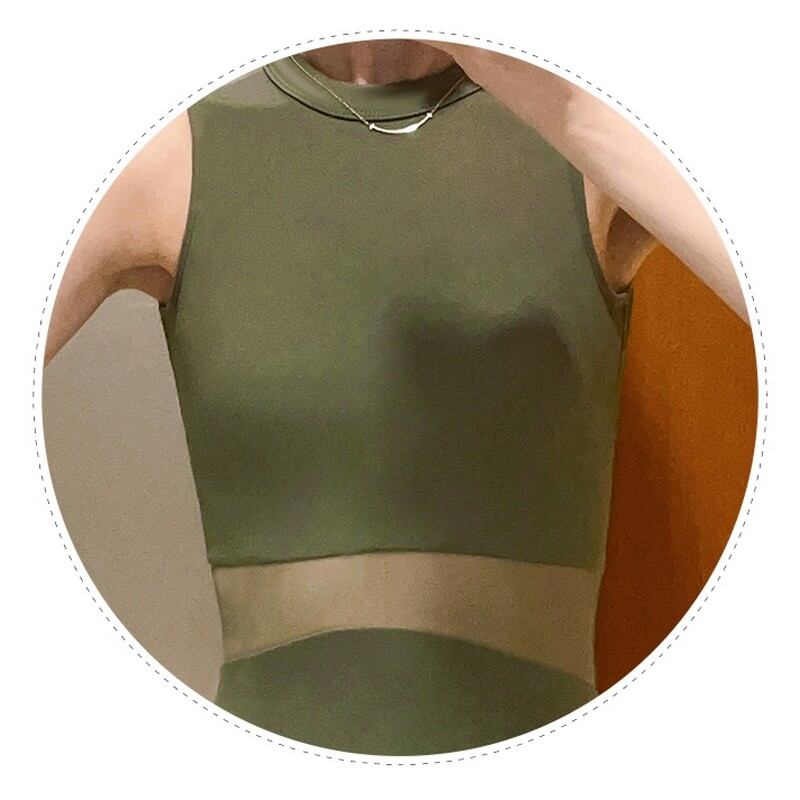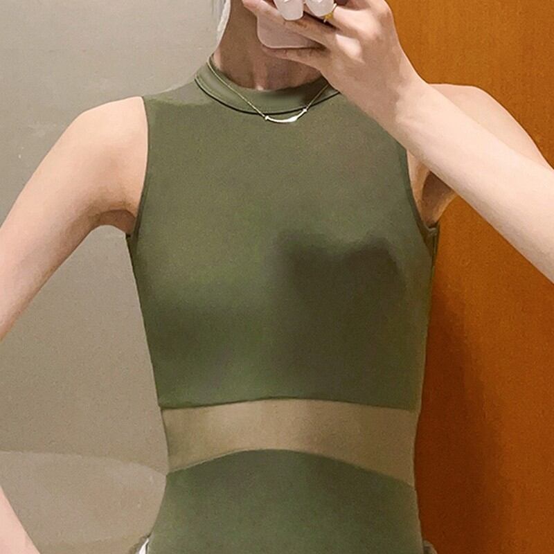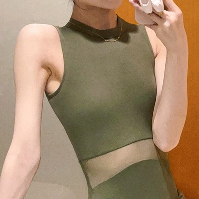 メッシュ部分の透け感が、肌を美しく見せ、ハイウエストに見えることから脚が長く見える効果も期待できます。
