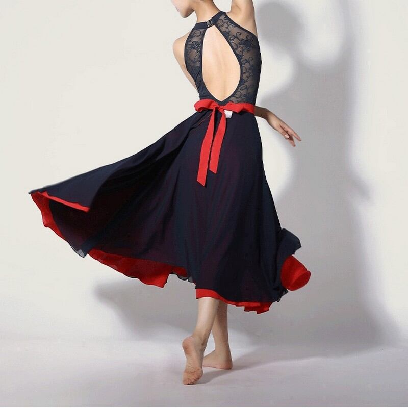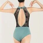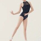 ティアドロップのバックスタイルにブラックレースの切り替えがクールなムードを纏う一着。