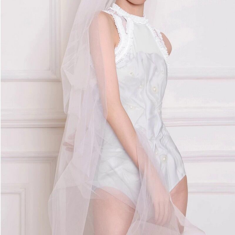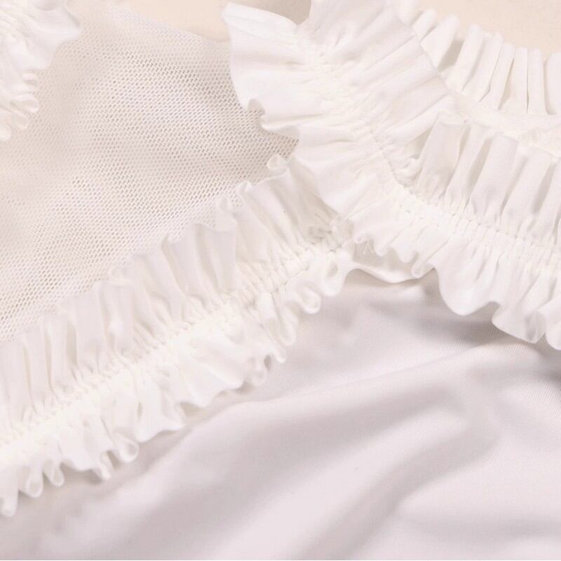 A031 / 清廉な透け感にフリルを施した、ロングスリーブの一着。