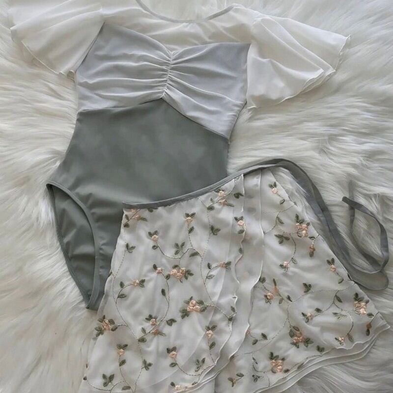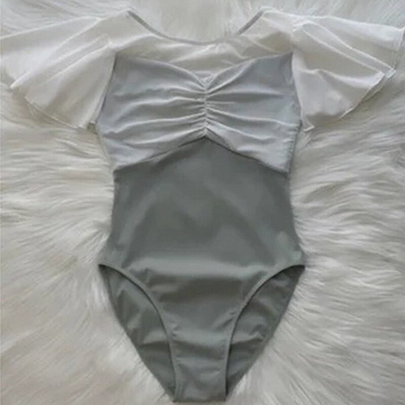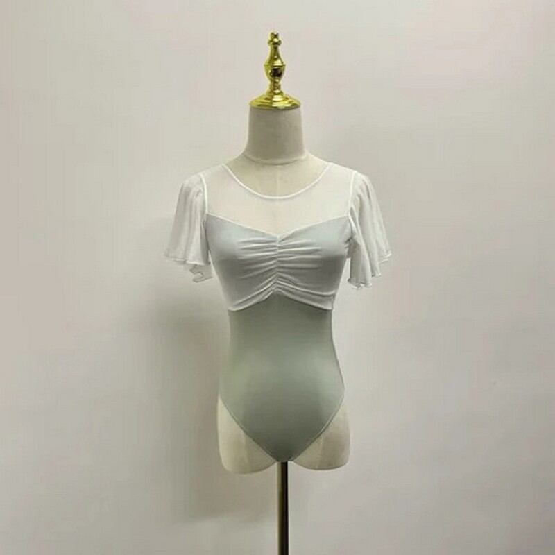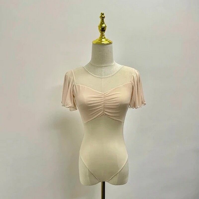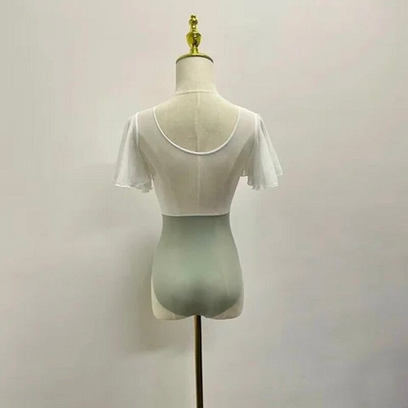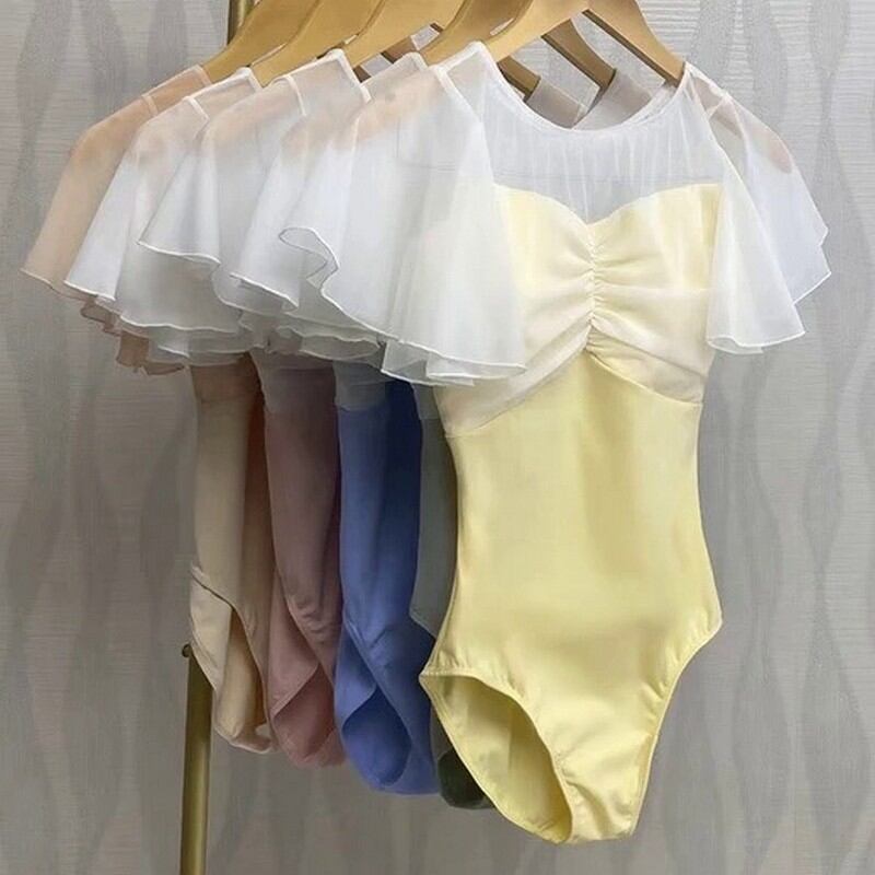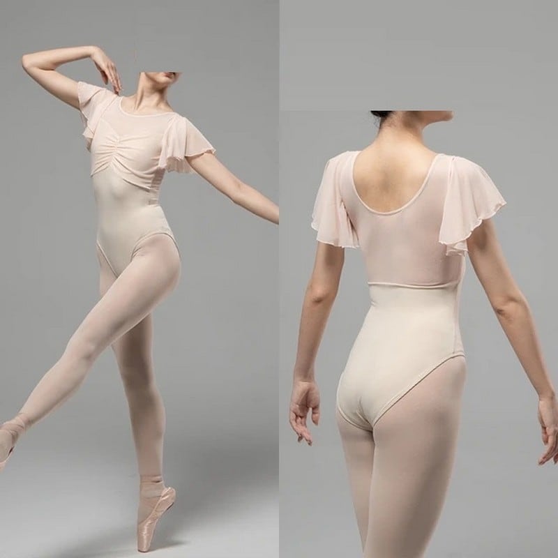 優雅なシフォンフリルスリーブが、女性らしさを引き立てるレオタードです。