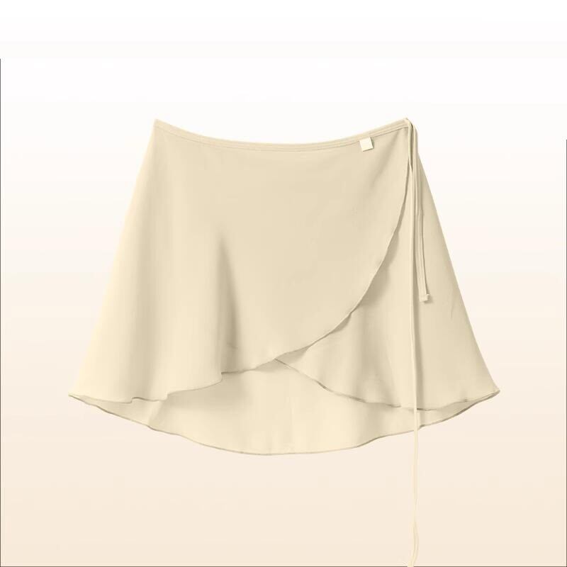 短すぎないショート丈のラップスカートは足元の表現をより華やかに彩ります。