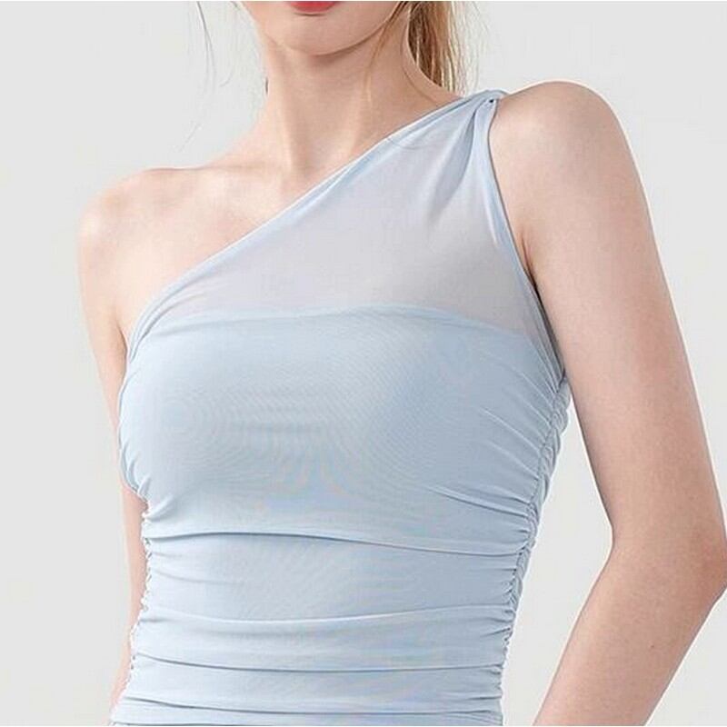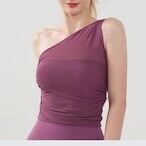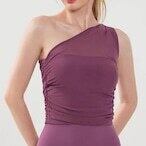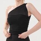 ワンショルダーのデザインがさりげなく個性と女性らしさを演出します。。体に優しくフィットする、着心地抜群のノースリーブトップスです。洗練されたシルエットで、どんなスタイルにも合わせやすいアイテムです。普段のレッスンから、トレーニング、コンテンポラリーダンスでも着用できます。