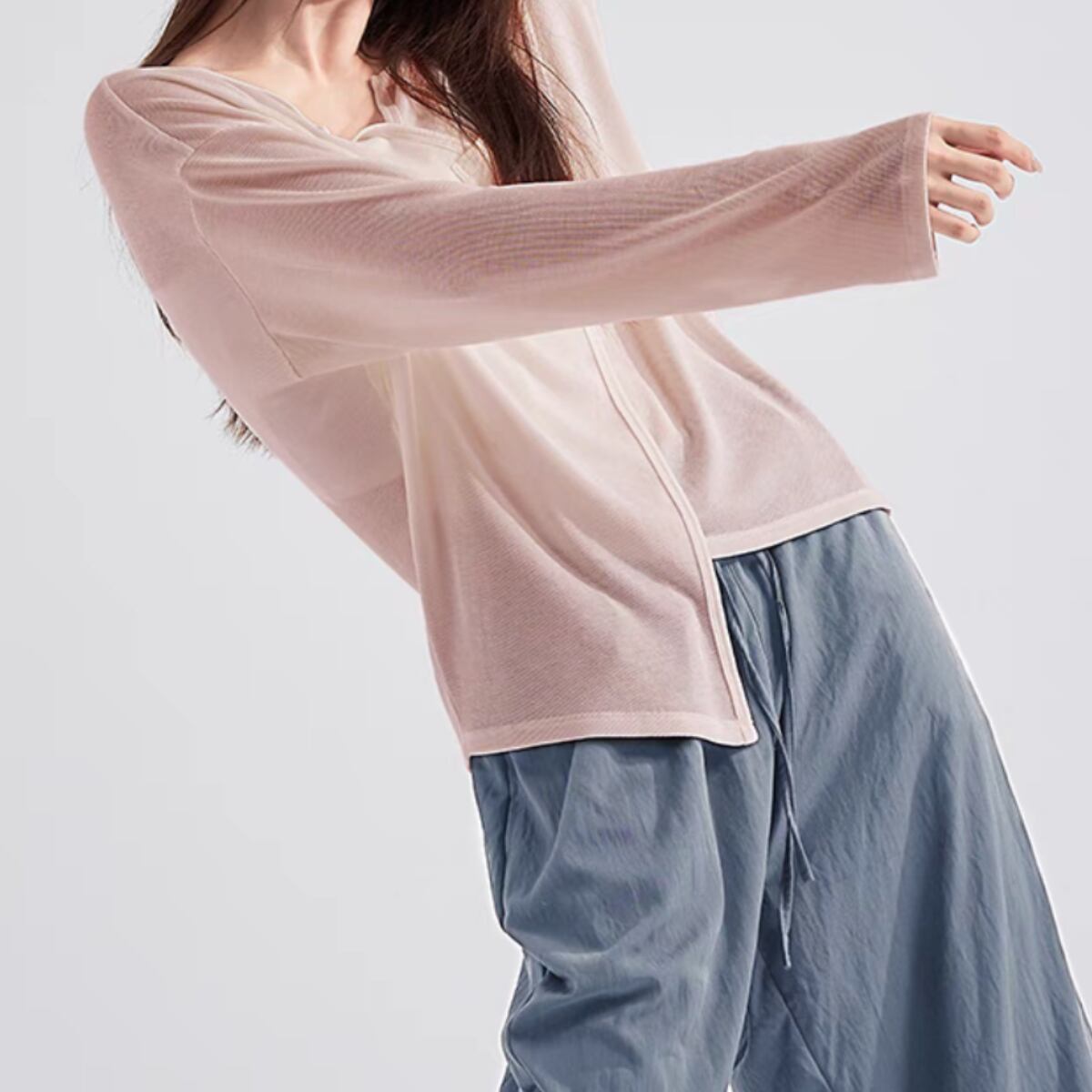 ゆったりとしたシルエットに、体に巻きつけただけのようなラップスタイルが柔らかくリラックスした印象の1着。