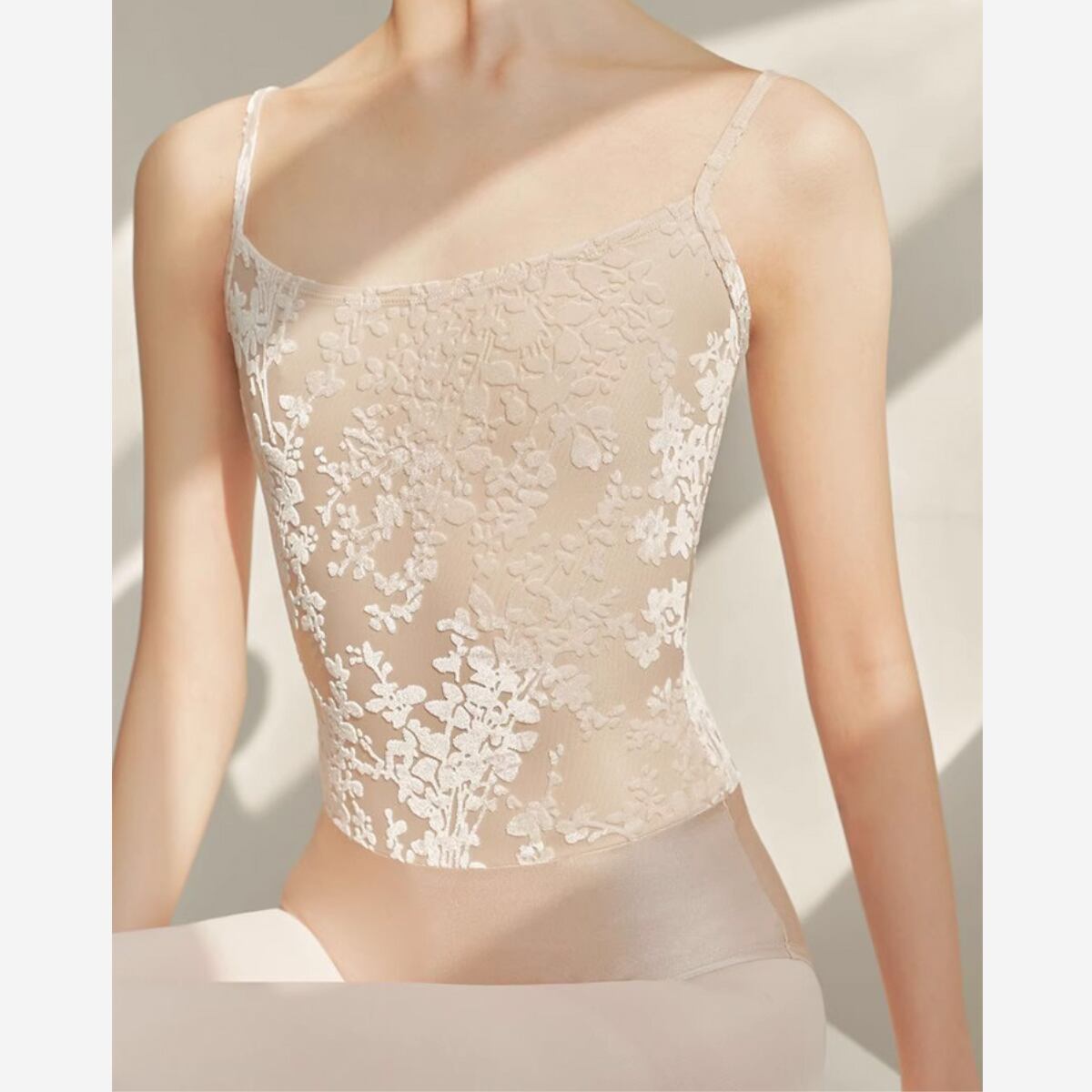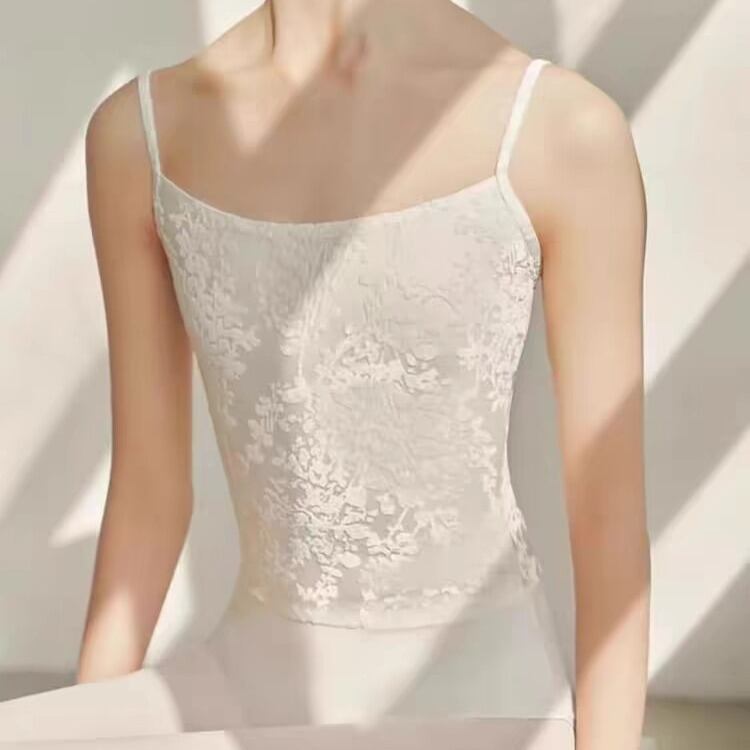 上品な花柄レースが魅力のストラップレスキャミソール。