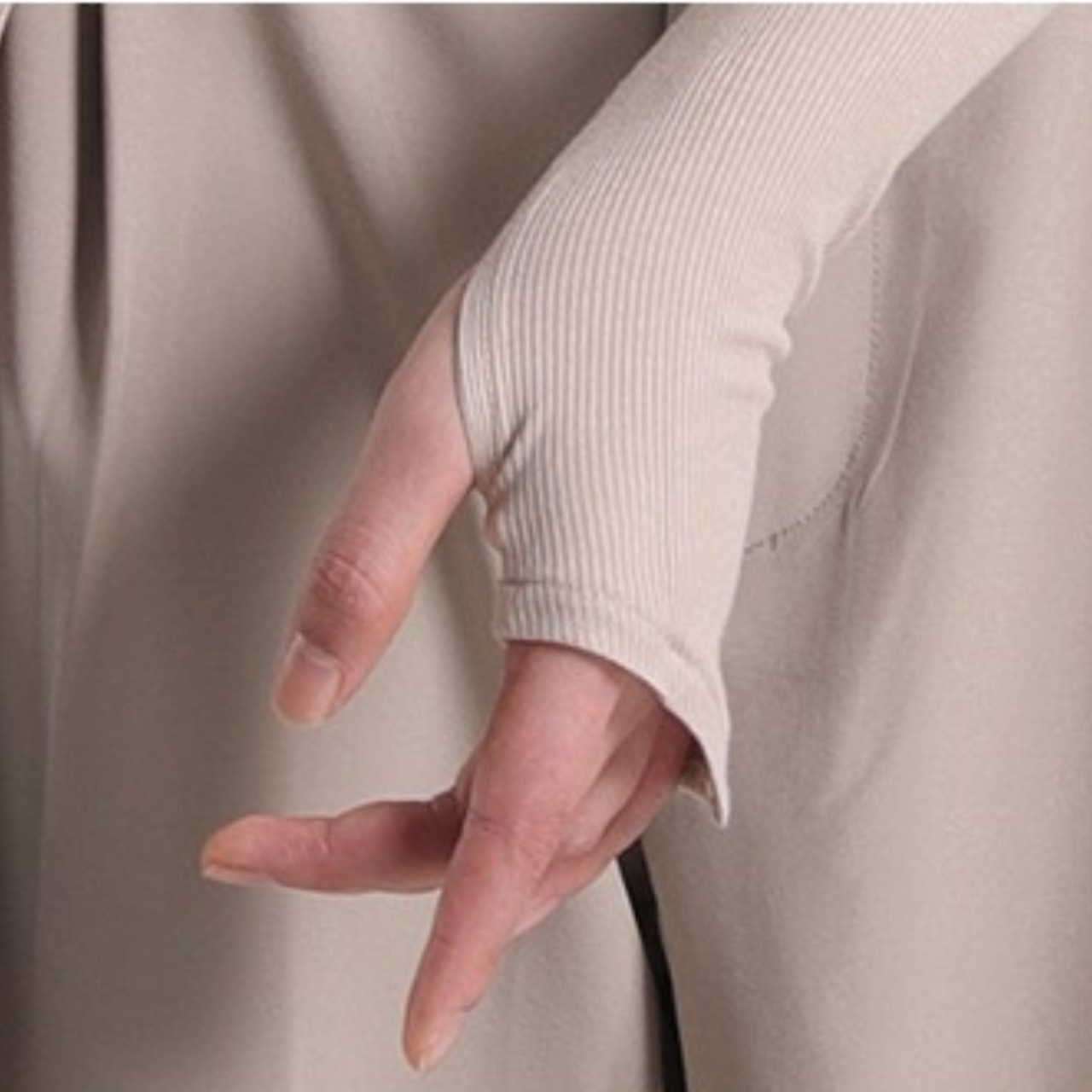 ハイネックデザインは首元を美しく演出、ロングスリーブで暖かさも確保。